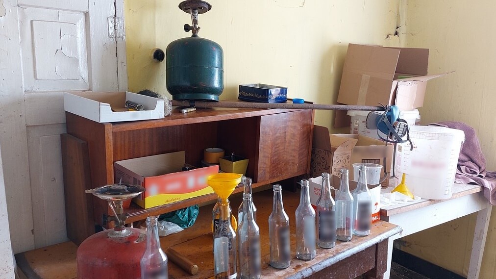Wobec mężczyzny zostało wszczęte postępowanie karne skarbowe. Za posiadanie i rozlew nielegalnego alkoholu 42-latek odpowie przed sądem.
