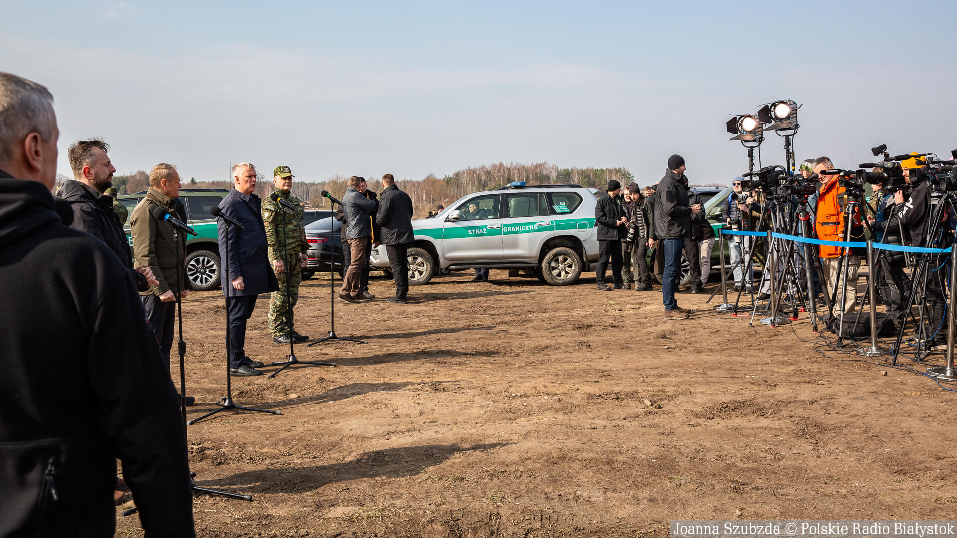 Następnie przedstawiciele rządu pojechali do Ozieran Małych, gdzie - tuż przy zaporze na granicy - odbyła się konferencja prasowa. Na platformie X premier poinformował, że na miejsce konferencji zmierza od strony białoruskiej grupa migrantów.