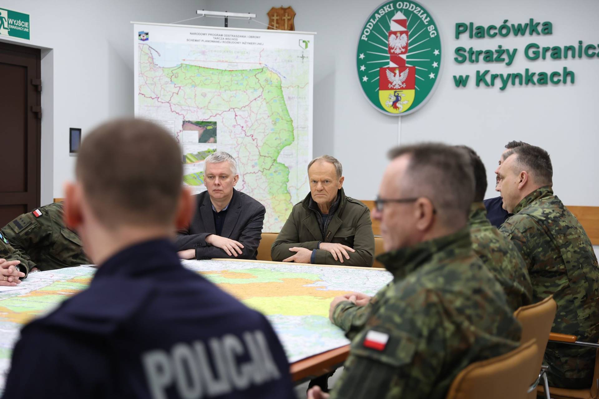 Wizyta rozpoczęła się w placówce Straży Granicznej w Krynkach, gdzie odbyła się odprawa z kadrą dowódczą Wojska Polskiego Straży Granicznej oraz Policji.