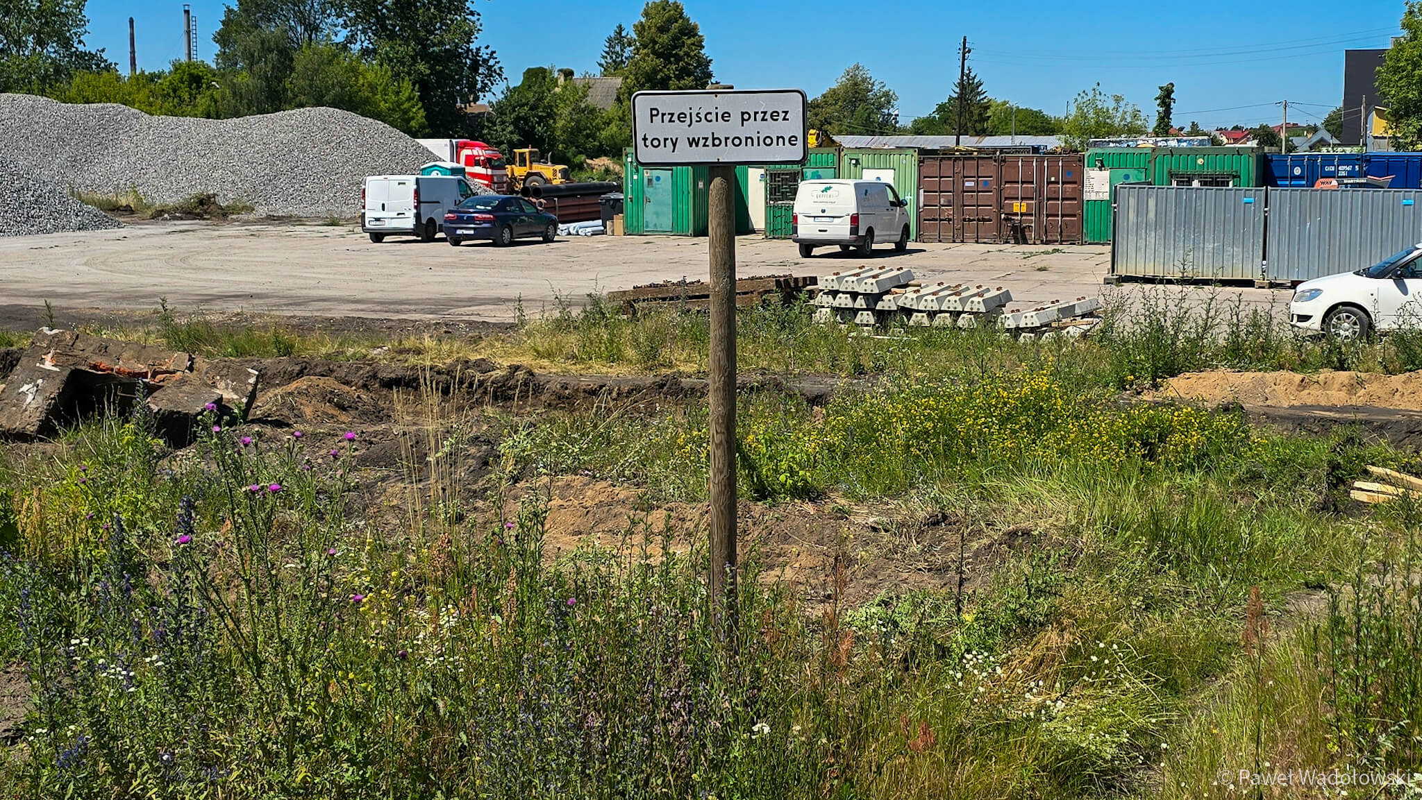 Cały czas przywożą też materiały budowlane i kruszywo, które będzie potrzebne do kolejnych etapów prac. Wykorzystują do tego równoległe do rozbieranych tory.