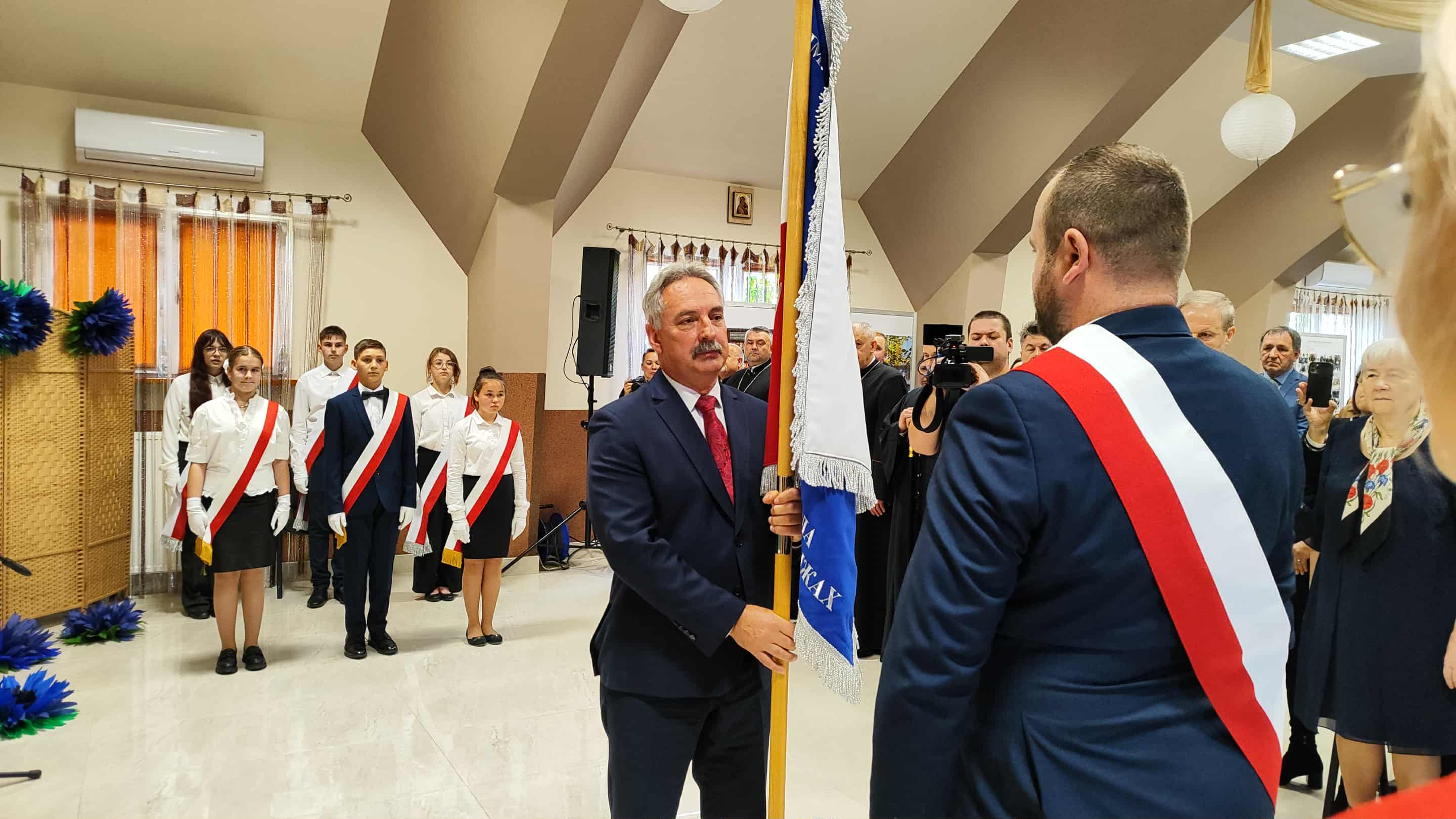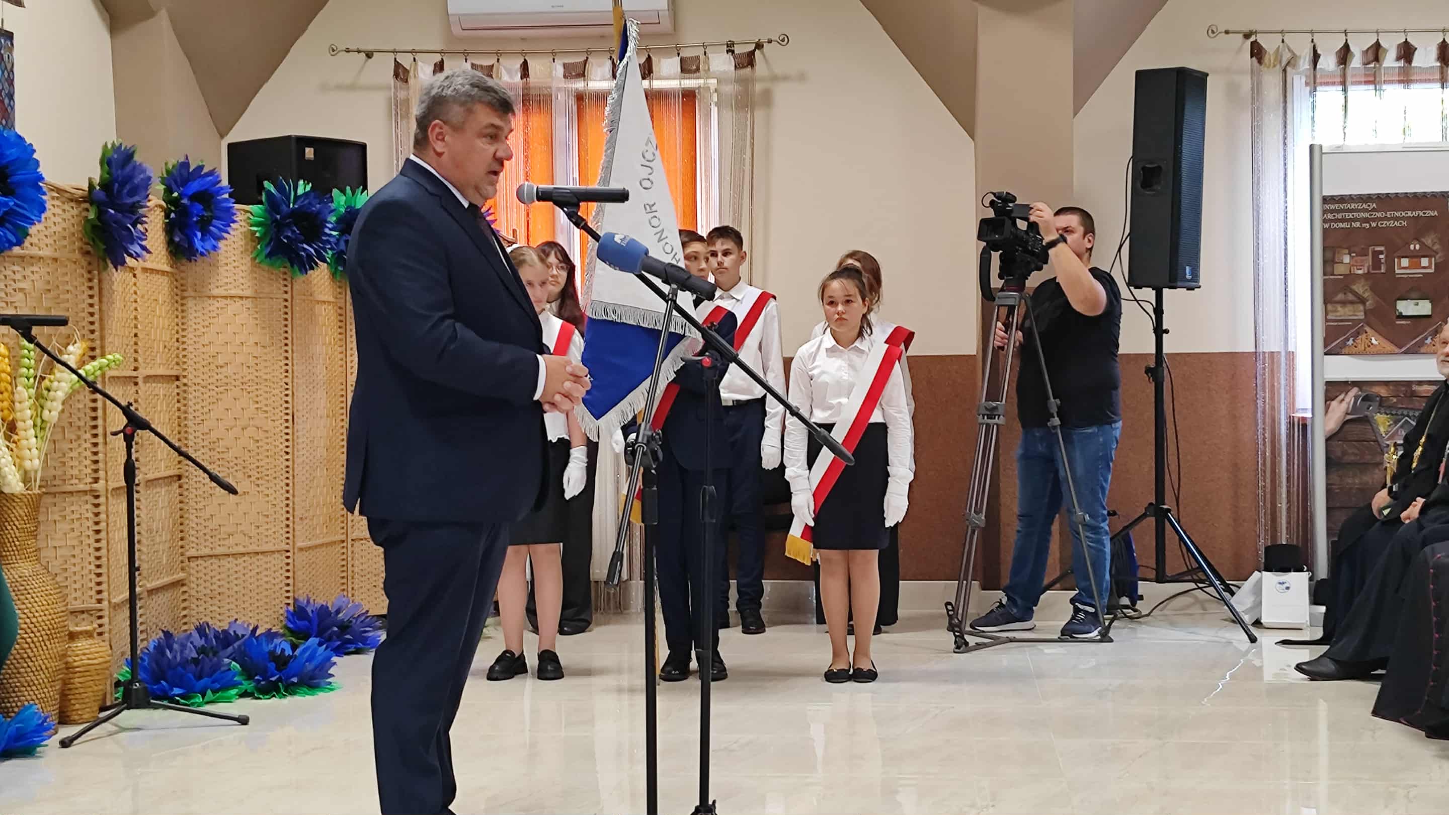 Wiktor Szwed jest dla nas wzorem postawy obywatelskiej, umiłowania języka przodków i przywiązania do tradycji. Sztandar to znak honoru i godności, symbol który wyraża tożsamość, misję i ducha naszej wspólnej pracy. Niech będzie dla nas wszystkich drogowskazem, nie tylko w uroczystych chwilach, ale i w codziennej pracy - mówi Mirosław Pietkiewicz, dyrektor Szkoły Podstawowej im. Wiktora Szweda w Czyżach.