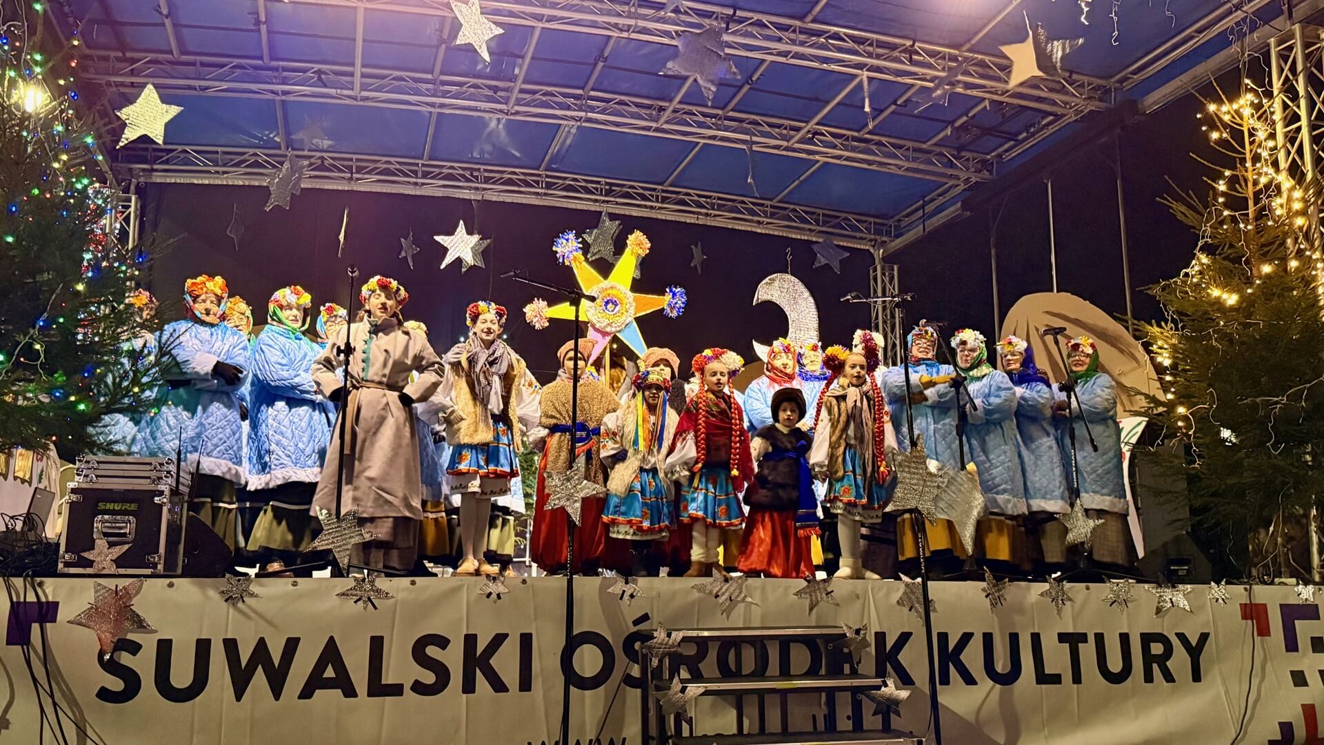 Spektakl muzyczno-taneczny "Magiczny Wieczór” przygotował Suwalski Ośrodek Kultury we współpracy ze Związkiem Ukraińców w Suwałkach oraz Uniwersytetem Trzeciego Wieku. Nie zabrakło kolęd i słodkiego poczęstunku, a całość dopełniły świąteczne iluminacje.
