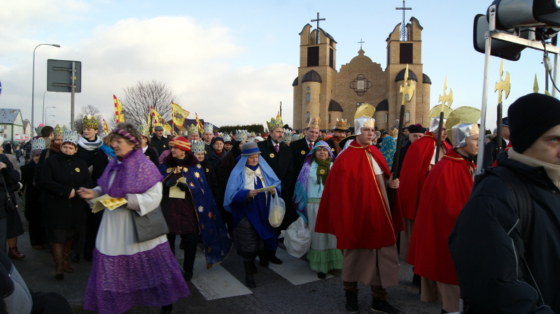 W tym roku w postaci mędrców: Kacpra, Melchiora i Baltazara, podróżujących na występujących w rolach wierzchowców samochodach terenowych, wcielili się parafianie, a towarzyszył im liczny orszak pasterzy i aniołów oraz królów w papierowych koronach.