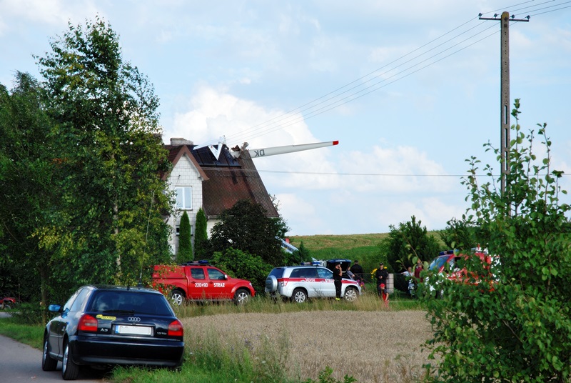 Dach domu jest uszkodzony, ale nikomu oprócz pilota nic się nie stało. Właścicieli nie było wtedy w domu. Teraz odpowiednie służby zajmą się zdejmowaniem wraku szybowca z dachu, a w sobotę (6.08) zacznie go badać Komisja Badania Wypadków Lotniczych. Ona też zajmie się wyjaśnianiem dokładnych przyczyn wypadku.