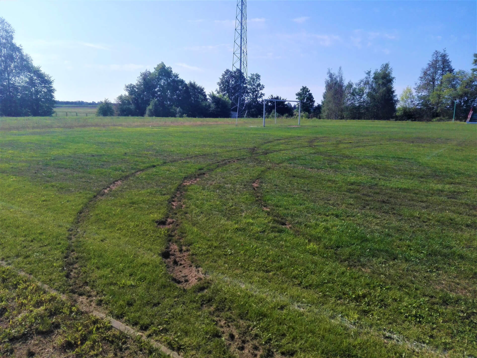 Boisko zostało zdewastowane i przypomina krajobraz księżycowy. Da się tam rozegrać mecz, ale rywalizacja będzie znacznie utrudniona. Musiał być to jakiś motor, samochód lub quad. Ktoś jeździł po boisku, robił kółka i zrobił straszne dziury w murawie. Uszkodzona jest płyta boiska z jednej strony oraz wjazd na stadion.