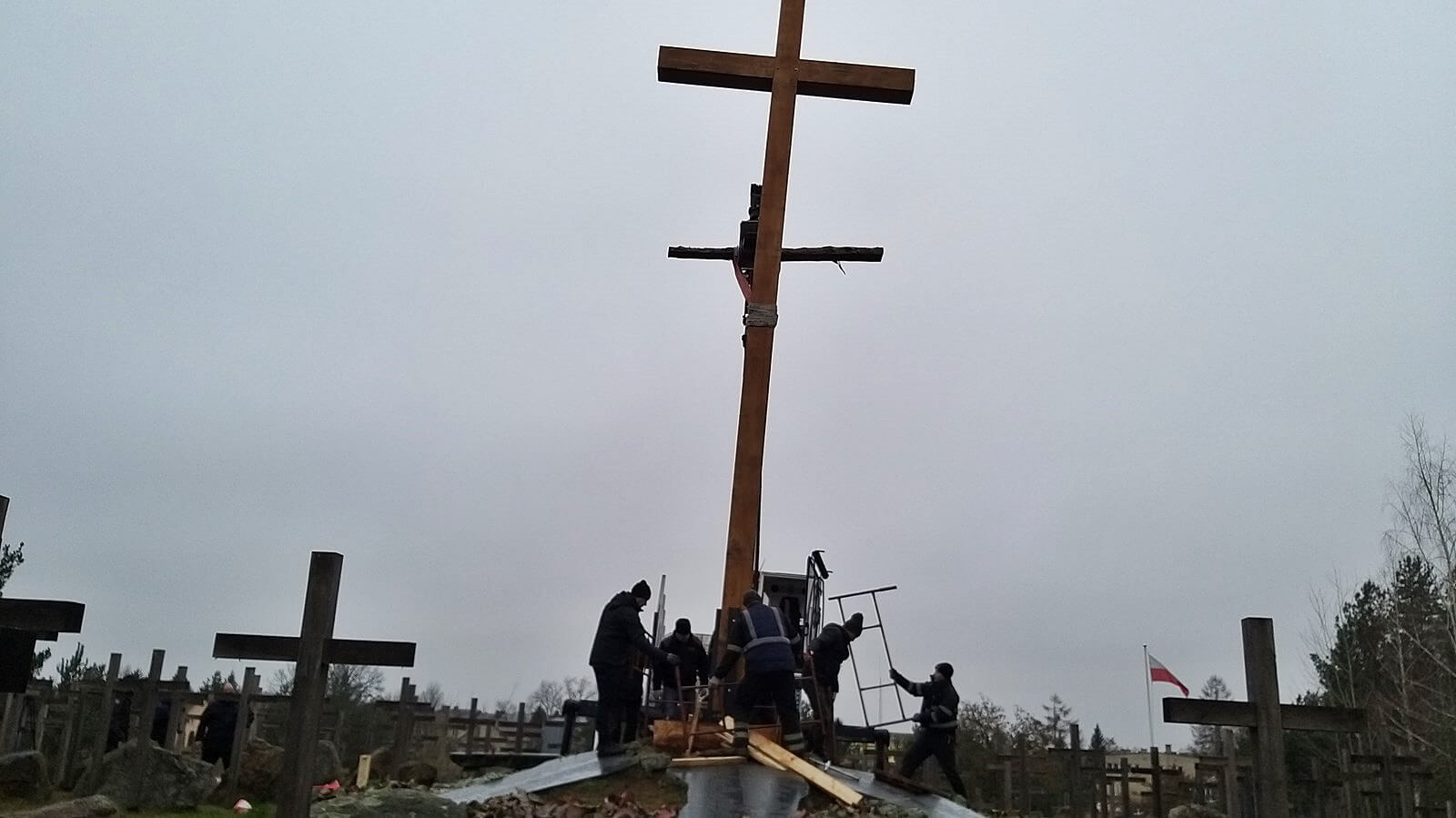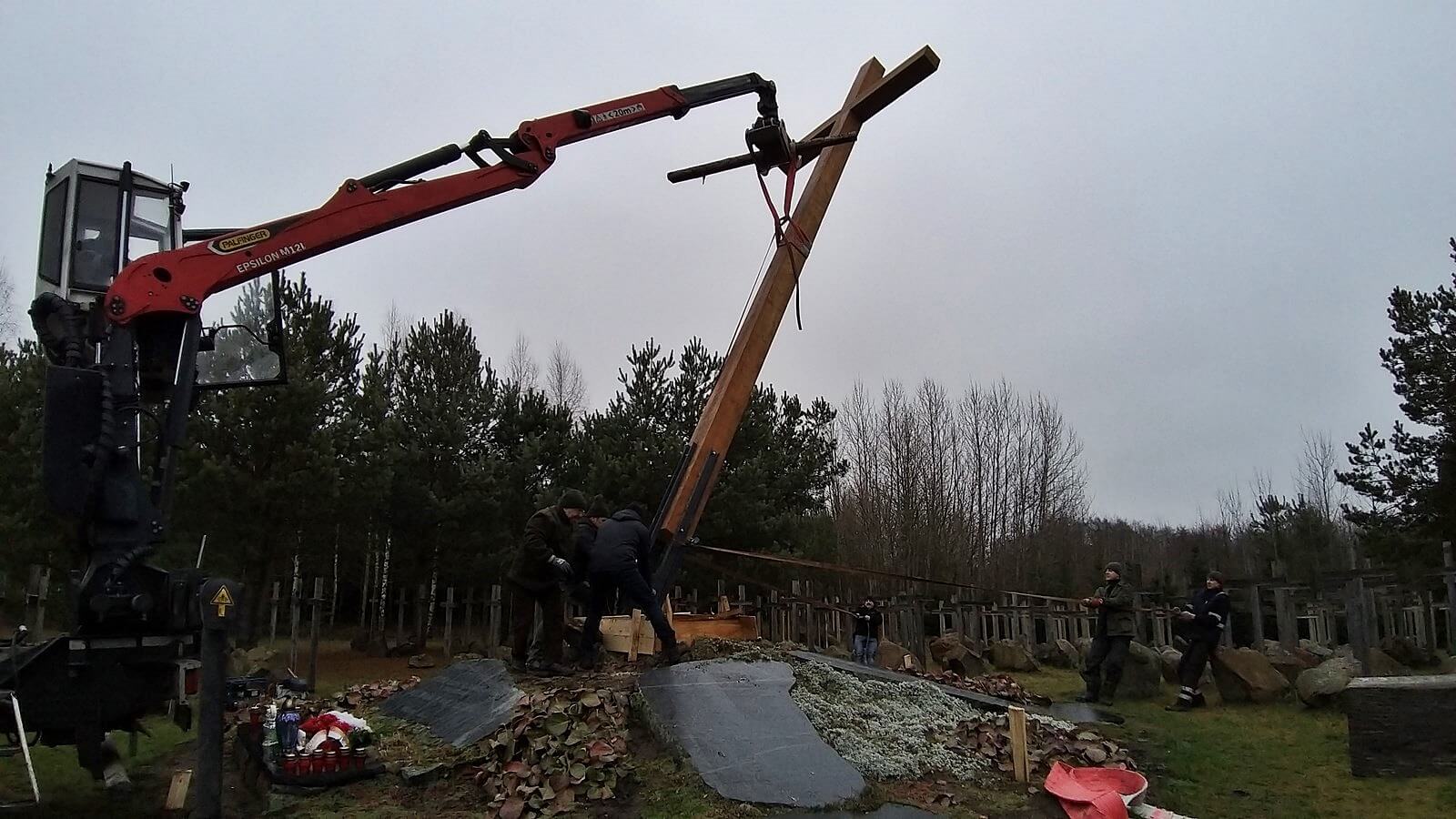 Na wzgórzu w Gibach robotnicy ustawili w sobotę (14.12) nowy 10-metrowy krzyż poświęcony ofiarom obławy augustowskiej. Stary, częściowo spróchniały został wcześniej zdemontowany i stanie w innym miejscu.