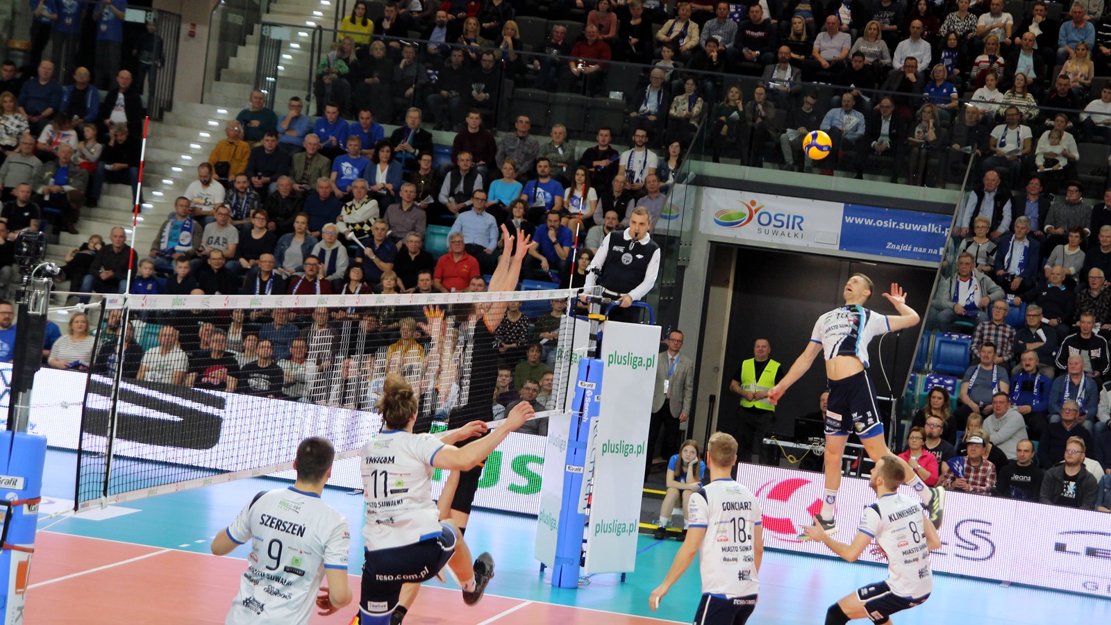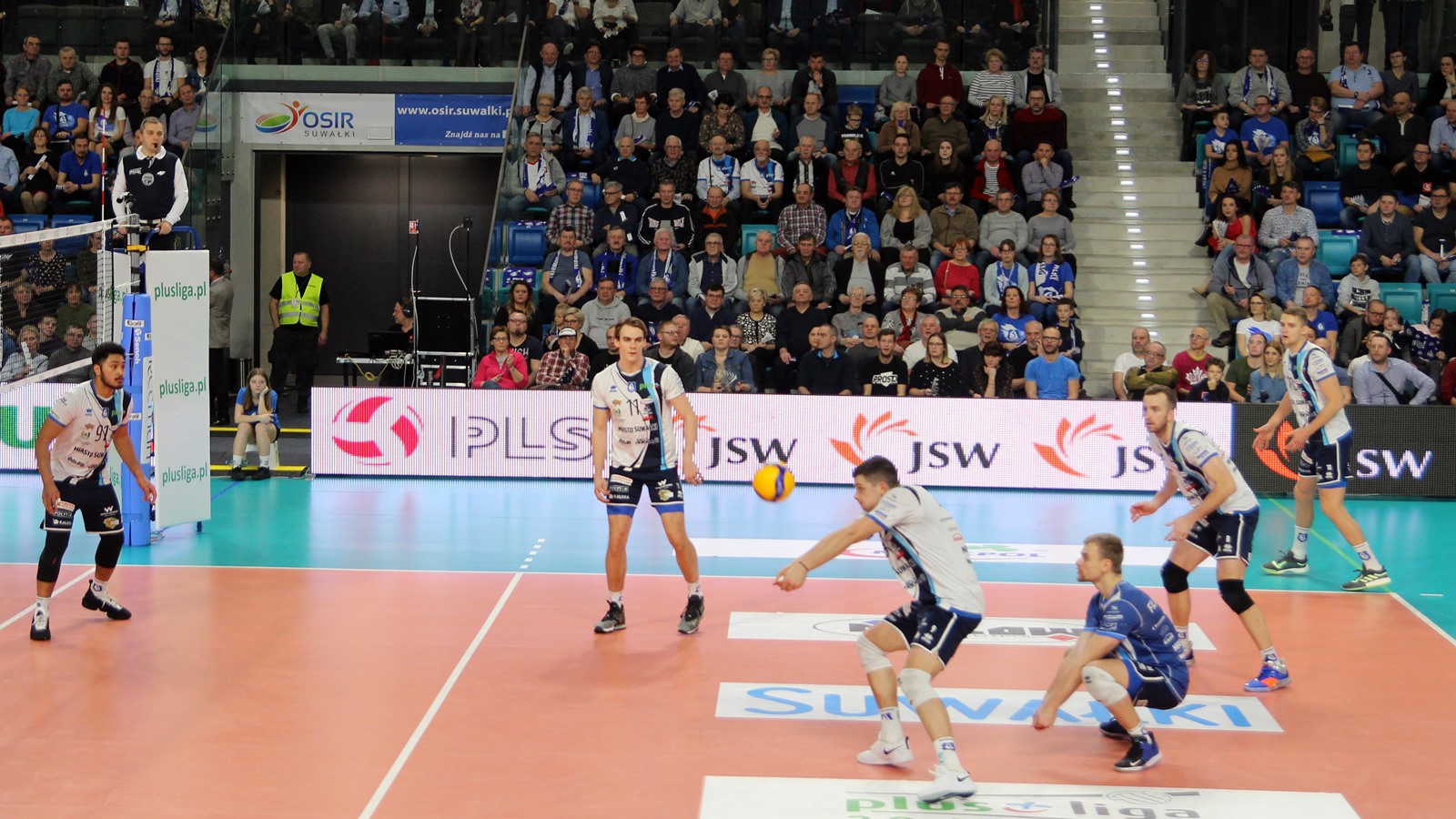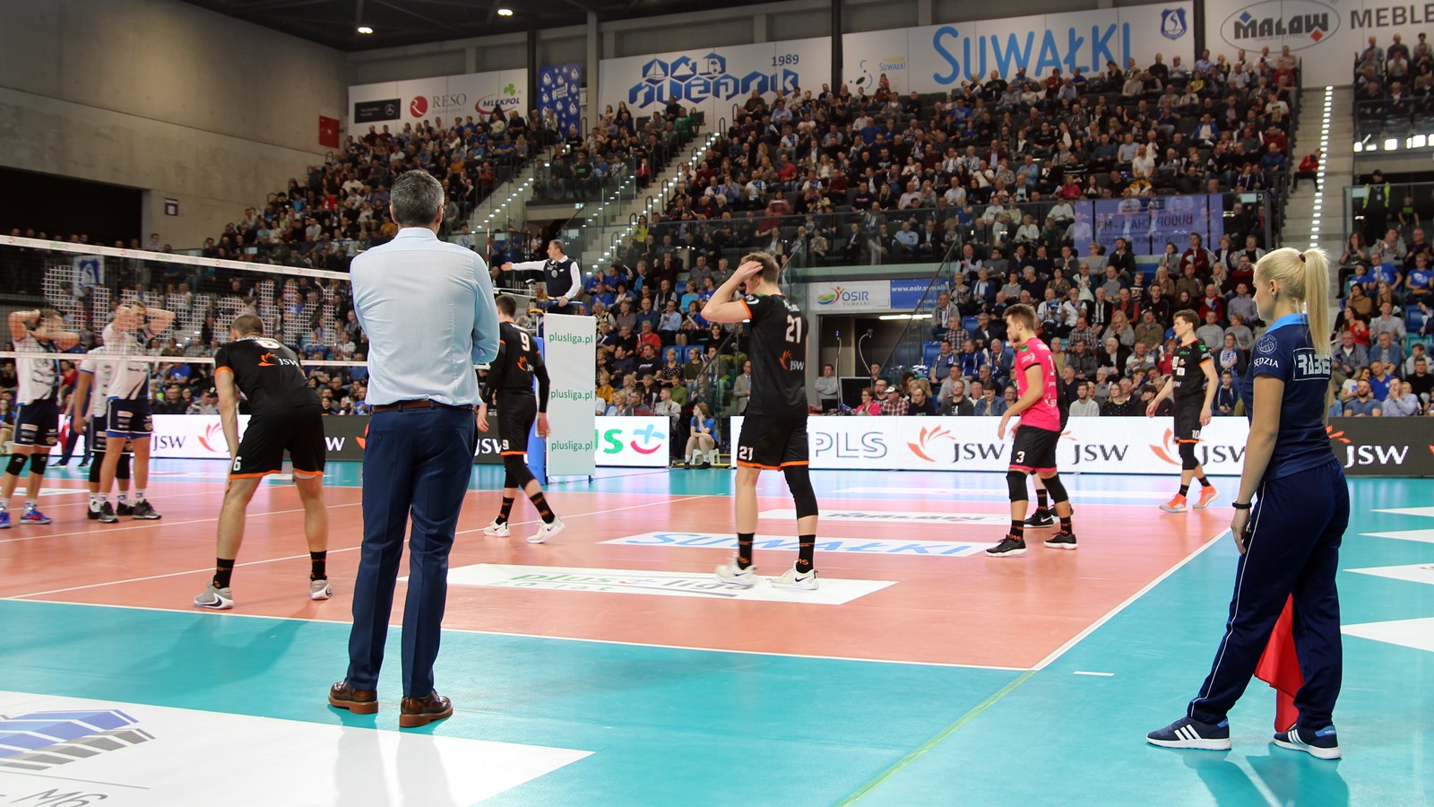 Hala Suwałki Arena wypełniona po brzegi - ponad dwa tysiące kibiców. Na mecz przyjechała także grupa 30-40 sympatyków gości. Ślepsk Malow rozpoczyna w składzie: Kevin Klinkenberg, Nicolas Szerszeń, Bartłomiej Bołądź, Andreas Takvam, Cezary Sapiński, Joshua Tuaniga oraz na libero Paweł Filipowicz/Adrian Stańczak.