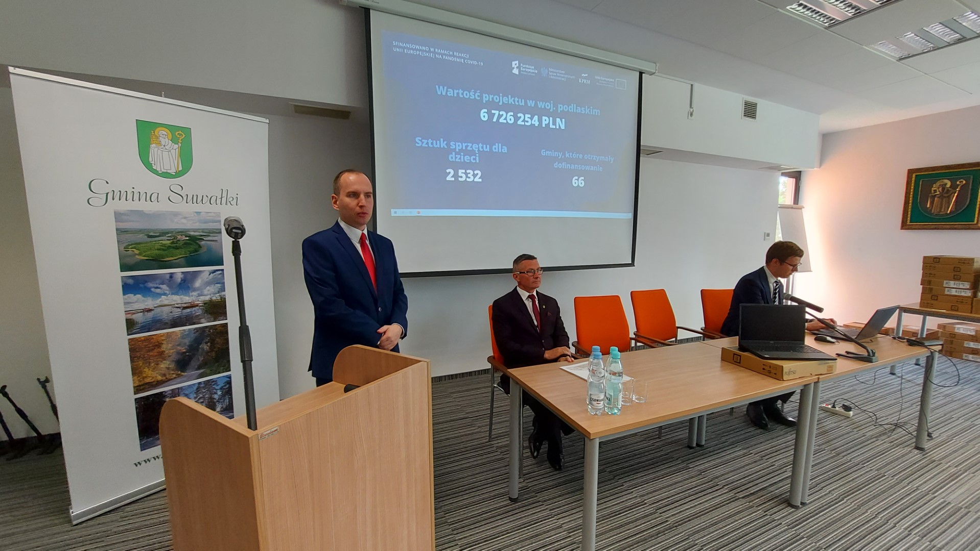 - To wyrównywanie szans w naszym województwie jest niezwykle ważne. Cieszę się, że dokonujemy takich zakupów, które spowodują, że dzieci, młodzież z tej suwalskiej ziemi będą mogły uczyć się na nowoczesnym sprzęcie - mówił obecny podczas przekazania sprzętu poseł Adam Andruszkiewicz, sekretarz stanu w Kancelarii Premiera.